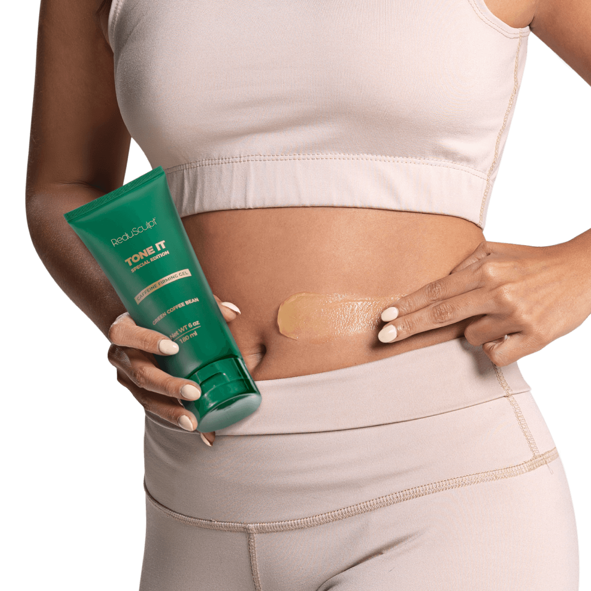Apply the Tone It Gel on targeted area for enhanced firming.